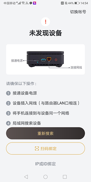 也可以进行扫码或者是输入设备ip地址进行手动绑定