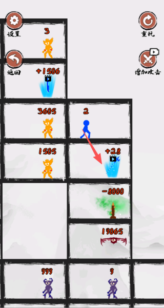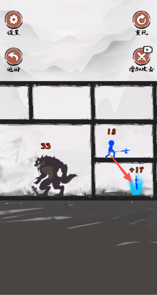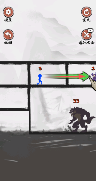 1. 点击选择火柴人角色后,直接指定攻击目标,就能自动完成战斗并获取经验实现升级。