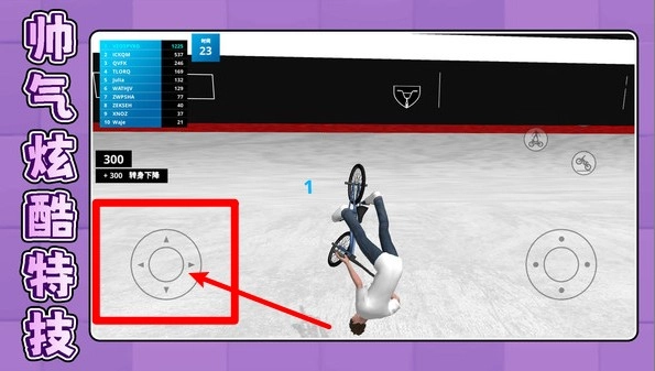 2.使用左侧虚拟摇杆控制角色移动方向,搭配技能按钮完成各种帅气炫酷的极限特技动作。