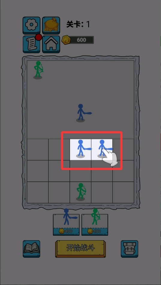 1、进入游戏后滑动屏幕将相同等级的战士合并,每次融合都能提升角色战力,注意保留高星级单位应对强敌。