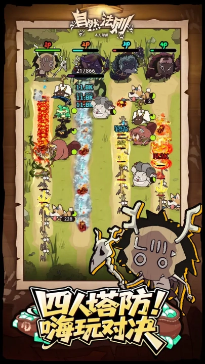 自然法则游戏是一款独具匠心的4人实时策略塔防游戏,它巧妙融入了刺激的肉鸽元素,定能为你带来别开生面的游戏体验。