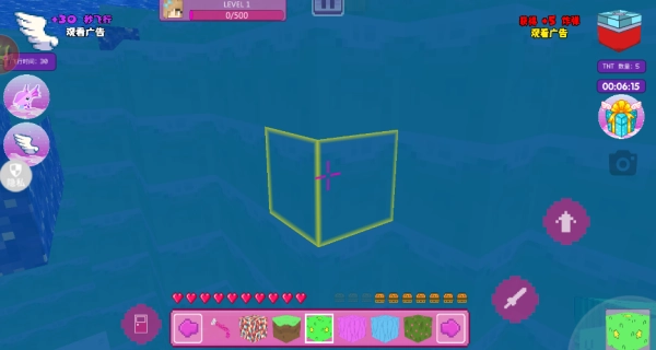 1、首先是最经典的创造模式,我们能够从下方的工具材料栏里挑选各类材料,来构建一个全新的像素世界。