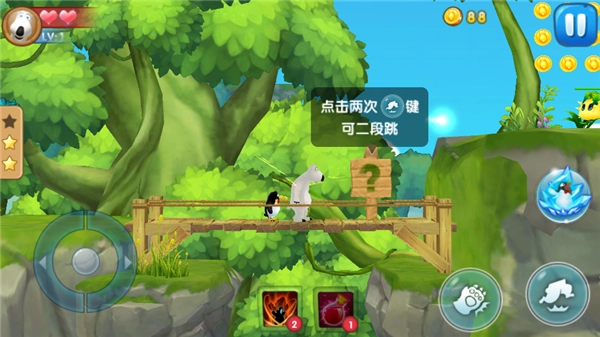 7、要是遇到略高一些的障碍,大家可以点击右下角的第二个按钮来完成跳跃动作。