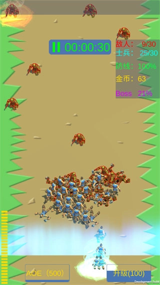 4、玩家需要点击游戏中的空白区域来召唤士兵,每关召唤的士兵上限为30个,只有等已召唤的士兵死亡后,才能继续召唤新的士兵。