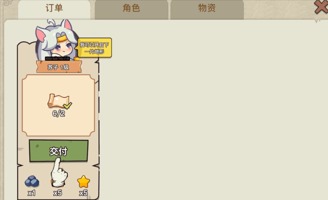 注意,开拓新地图后,没有太多可以合成的物品的话,这时可以采集场上物品,同时继续完成订单,提升仙子等级哦。