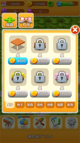 7、积累足够资金后,可对餐厅进行升级、扩张和改造。