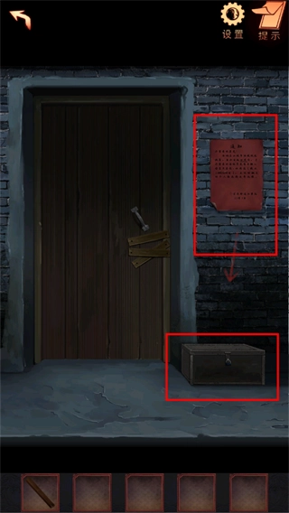 21、点击右侧的门,对着锁使用道具砖头,将锁砸开