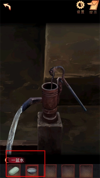30、点击完整的压井,出水口出水,对着水流使用道具:脸盆。获得一盆水