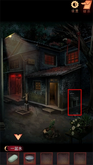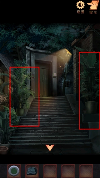 16、点击上方发光的孔洞,查看院内的纸箱,获取牛奶箱上滑块位置的线索