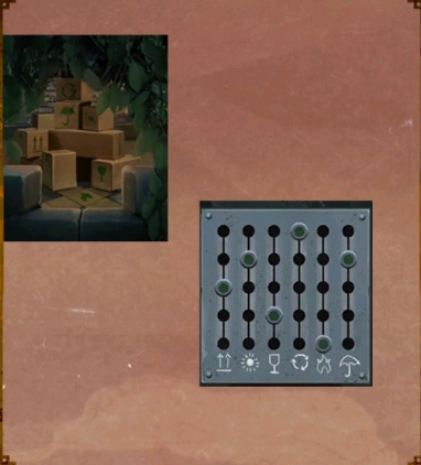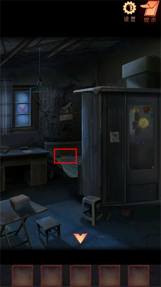 32、点击写字台的抽屉,依据此前得到的线索——墙面上水流构成的几何图形与符号的对应规律,把机关滑块调节至正确位置,抽屉便会向下滑出,随即获得螺丝刀与铲刀这两件道具。