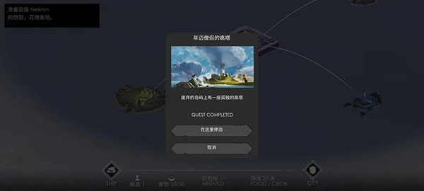 7、船只驶出港口后,点击世界地图,接着选择附近的小岛进行停泊,等待大约8天时间抵达该岛,之后再次打开世界地图,点击之前停泊过的那座小岛。