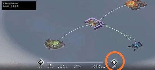 8、接着选择开展贸易活动,其中大都市可交易陨石,高塔能交易经文,村庄则用于交易食物。建议按照先前往大都市、再去高塔、最后抵达村庄的顺序进行。
