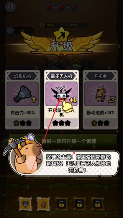 4、升级强力装备,建造工厂获取资源,击败敌人,并用先进钻头持续深入挖掘!