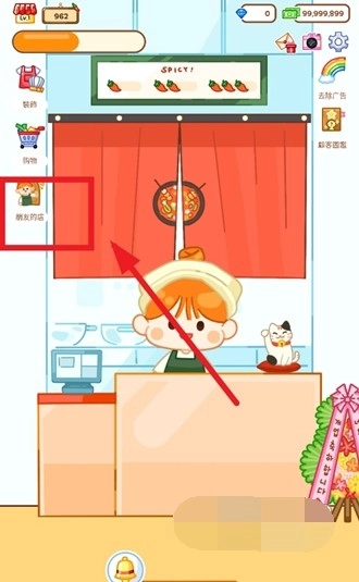 2、完成教程后,会出现如下界面,点击左侧朋友的店铺;