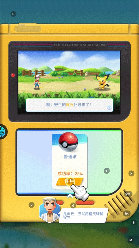 5、恭喜你,成功抓捕到一只宝可梦精灵——皮卡丘;