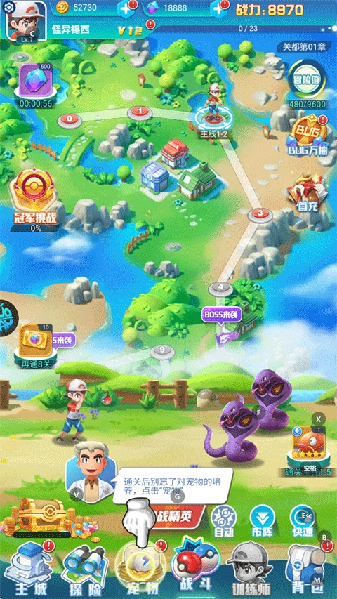 1、丰富多彩的冒险体系,快召集精灵开启成为最强训练师的冒险征程吧!