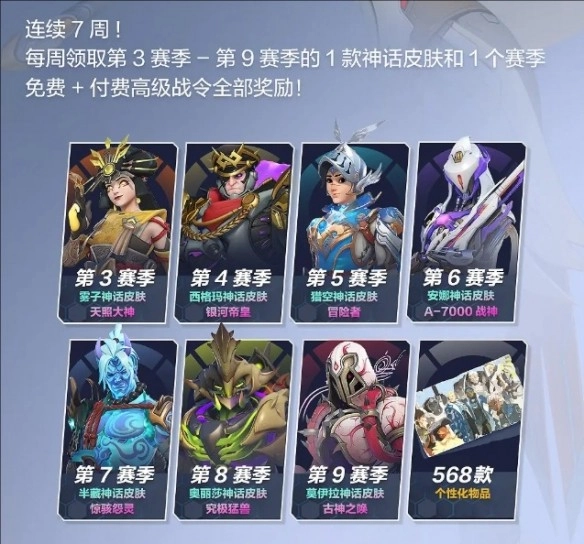 2、登录领取奖励:连续7周登录每周领取一个赛季的所有奖励