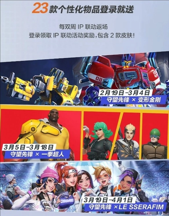 6、登录就送IP联动皮肤奖励:23款个性化物品