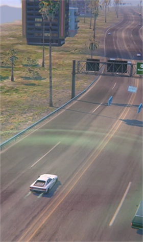 1、轻松的驾驶玩法,目标是尽可能久地驶向日落,同时通过收集磁带和惊险驾驶来获取积分。