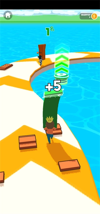 1、收集沿途的地板,搭建桥梁跨越水面,制造捷径到达终点!