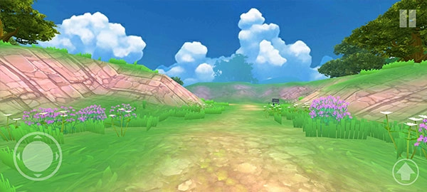 2、开始你会来到一个没什么人的草地上,左下角按键可以控制自己移动,右下角是跳跃,滑动右侧屏幕就可以调整视角方向,查看周边环境。