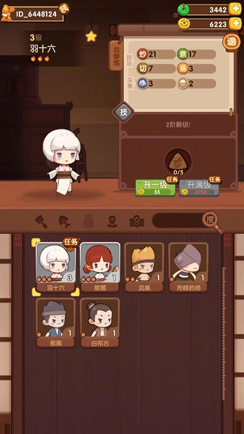 6、经营:核心主线任务围绕“经营”饭店展开,玩家需完成制作特定菜品、不同品级的菜肴、运用特定技能烹饪、指派指定厨师掌勺等多样内容,这些丰富的经营玩法既能助力玩家提升自身技能,也能吸引更多客人前来客栈就餐。