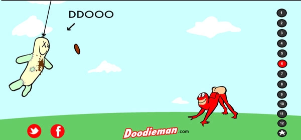 3、完成设置后,点击右侧标有1到10的按钮,玩家就能操控大便超人对人偶发动大便攻击。