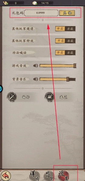 1、进入游戏打开设置,在最上方可以输入兑换码