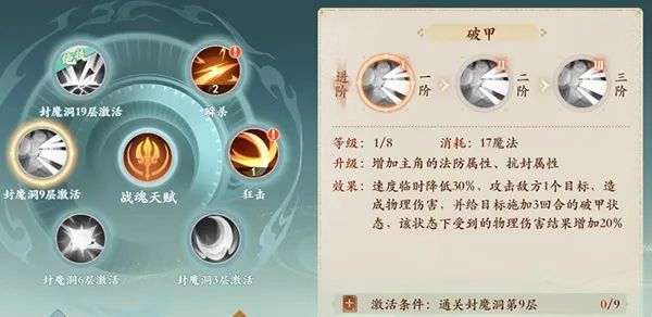 5技能效果为破甲:使用后速度临时下降30%,该效果将在回合结束时清除;同时为目标施加破甲状态,持续3回合,期间目标受到的物理伤害结果提升20%。(技能2阶时,破甲状态的持续时间额外增加1回合;3阶时,破甲状态带来的物理伤害结果提升幅度额外增加10%)