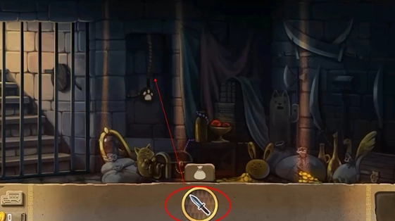 5、在这个柱子上,用匕首把绳子切开,获取钥匙。