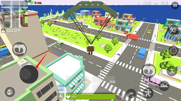 5、登上飞机后,借助左上角的小地图挑选合适的降落地点,点击手掌图标即可完成跳伞;
