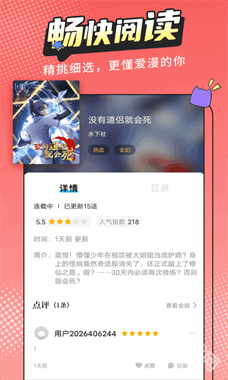 你可以留下你喜欢或不喜欢的评论,并遇到志同道合的漫画!