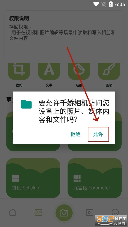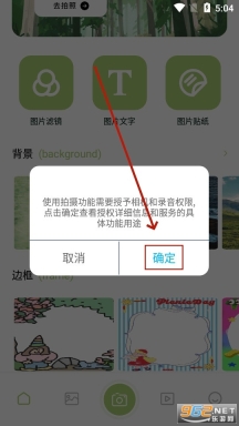 安装并打开千娇相机, 点击 确定进行使用