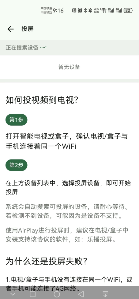 3.将我们的手机和电视连接同一个WiFi,然后点击相匹配的设备名称,开始投屏即可。