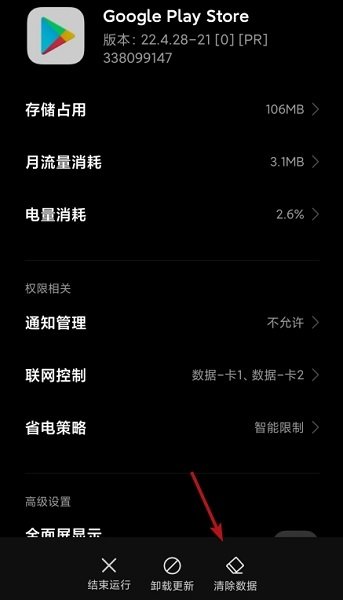 1、我们在应用管理中找到Google Play 商店,然后点击清楚数据。