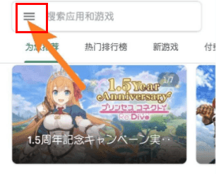 1、打开谷歌商店后,点击左上角的“三条横杠”,如图所示;
