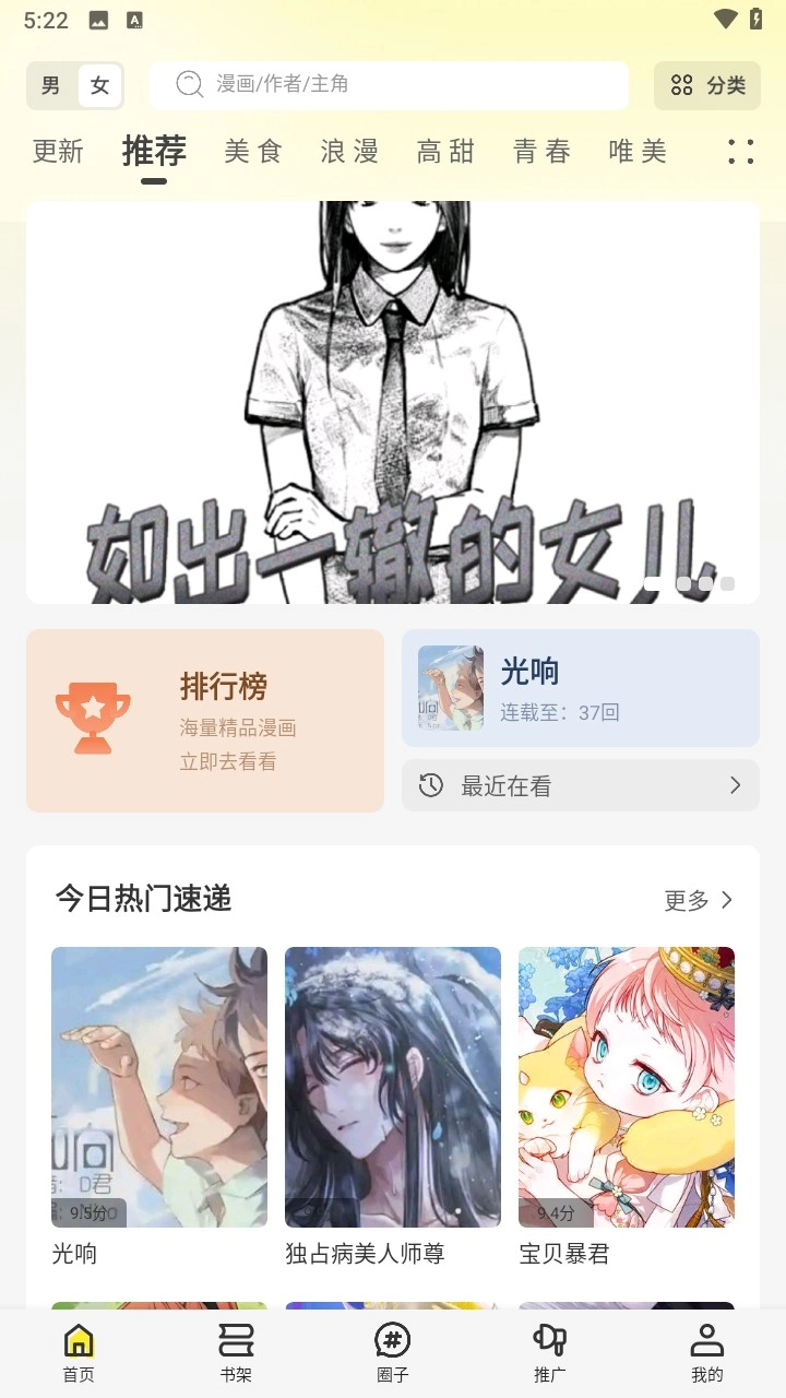 4、成功进入首页之后,我们可以看到各种不同分类的漫画资源。