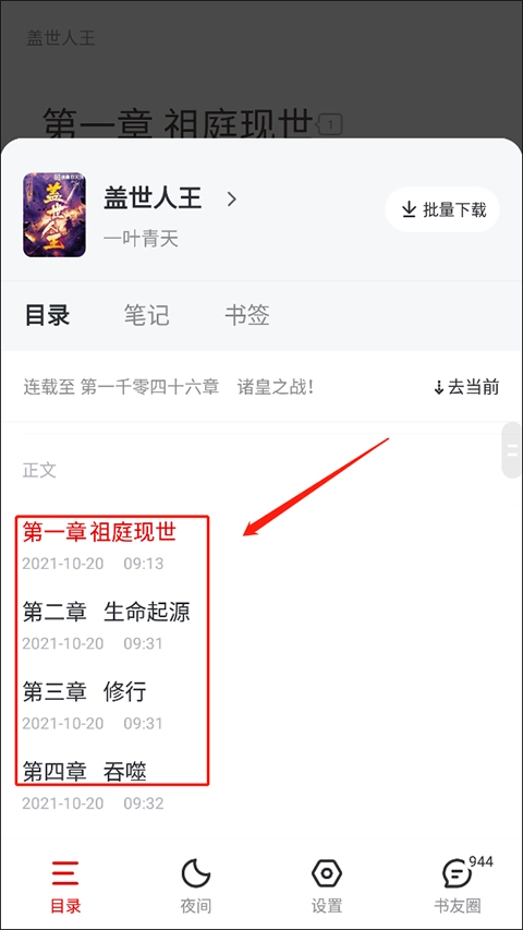 4、在这里我们就能够看见小说的全部章节内容,用户点击该章节标题,就能够快速的进入到该章节内容。