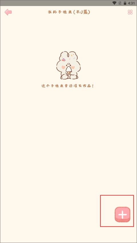3、新增好之后就可以开始记录手帐了,进入手帐管理界面,点击右下角的“+”按钮。