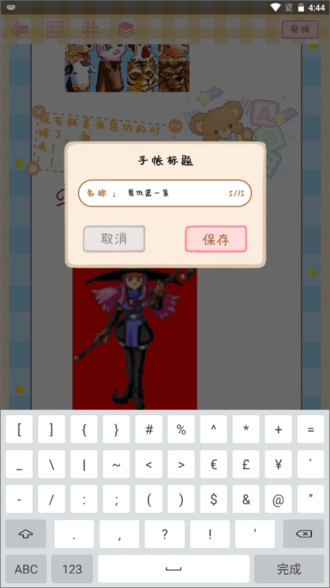 5、编辑好了以后,输入手帐标题,最后点击保存按钮即可。