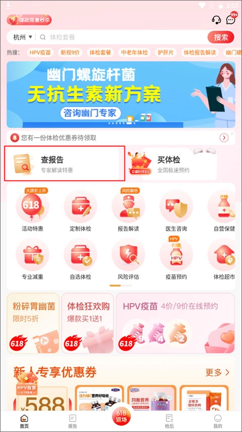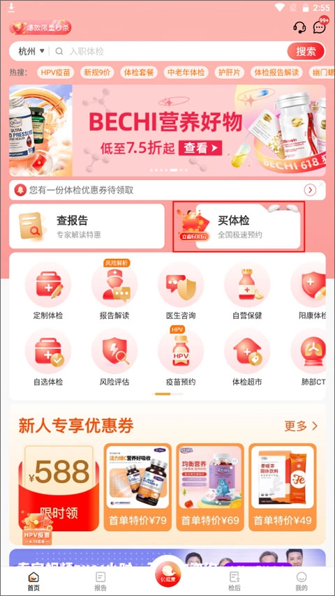 2、折扣专区:大额抵扣券领取,节日体检折扣;