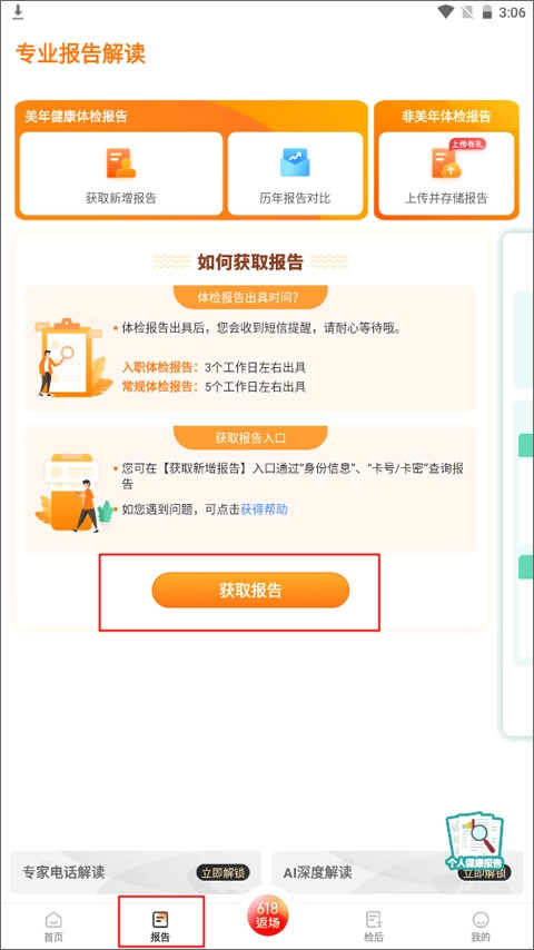 你可以切换至【报告】页面,点击页面上方的“获取新增报告”按钮进行查询。