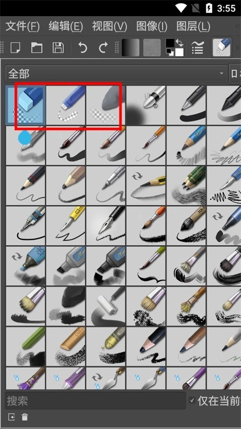 在笔刷预设里面有各种橡皮擦,除手绘笔刷外,直线工具、矩形工具、甚至渐变工具等大多数工具都可以切换到擦除模式用于擦除内容。