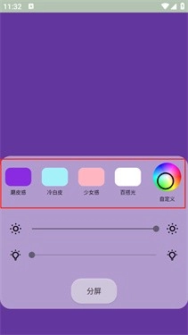 2、打开软件并进入补光灯页面后,系统为用户提供了多种灯光效果,用户还能根据需求自定义灯光样式。