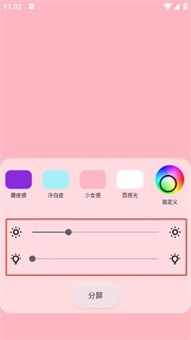 4、点击“分屏”,可以出现两种不同的灯光。