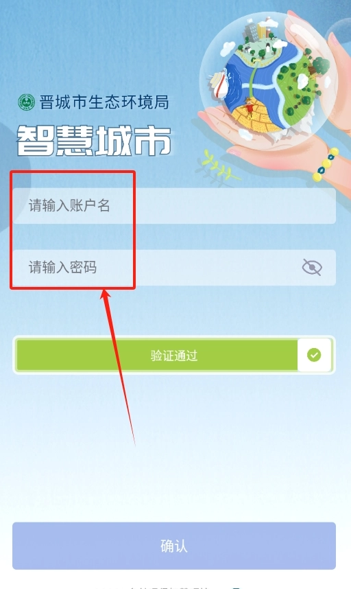1、启动智慧环境决策软件,在登录页面的指定区域,正确填写个人的账号与密码。