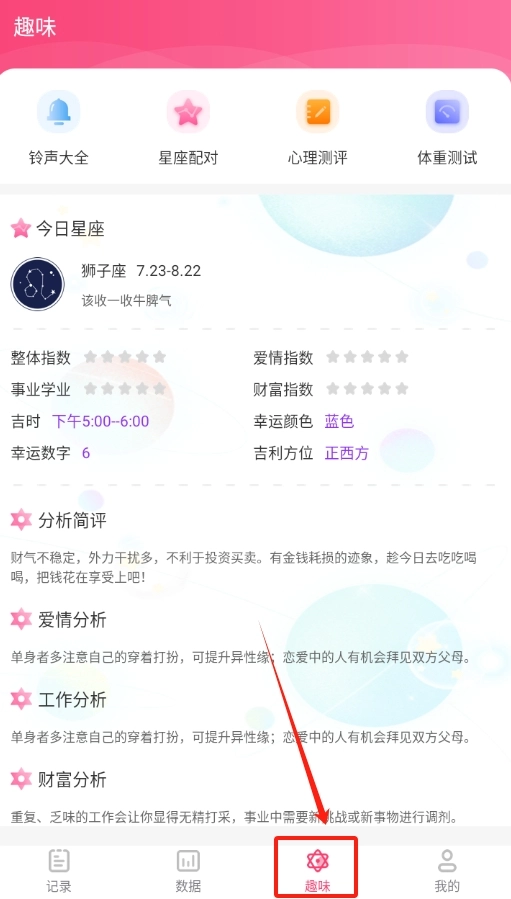 切换到趣味页面,可查询星座相关内容,为闲暇时光增添乐趣。