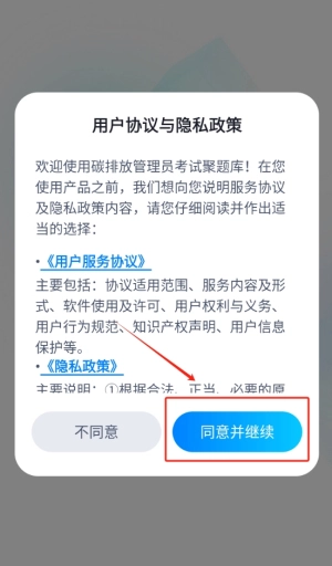 1、点击同意进入应用程序,接受相关条款和隐私政策,以顺利开始您的学习之旅。