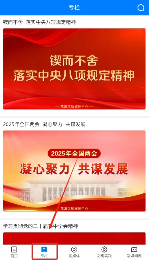 2、往下滑能看到分好类的专栏,想找什么类型的信息直接点进去就行。