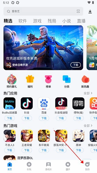 1、在本站并安装软件,然后进入应用宝,点击我的